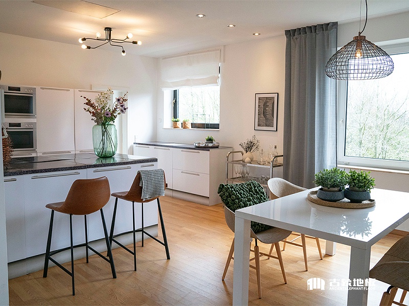 原木色木地板颜色看起来浅,但不得不说,它是最为耐脏的颜色之一,因为本身颜色就与灰尘颜色相近,特别能藏灰。所以就算平常地板表面有点积灰,也不会很明显。不仅如此,古象原木色木地板还采用了智能锁扣技术,让地板无缝拼接,不易藏灰、头发等细小物体,打理起来也不费力,坚韧的材质更让它可以具有很好的耐磨和耐用性、可以长期使用。