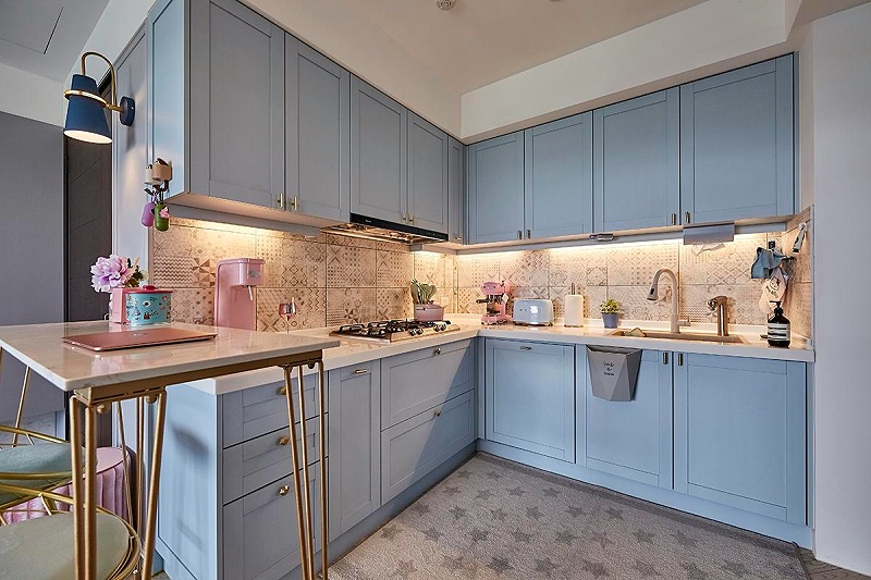 简约清新的厨房,犹如深处蓝天白云的梦境,可以让人释放压力,卸下疲惫,尽情享这一刻的烹饪时光。