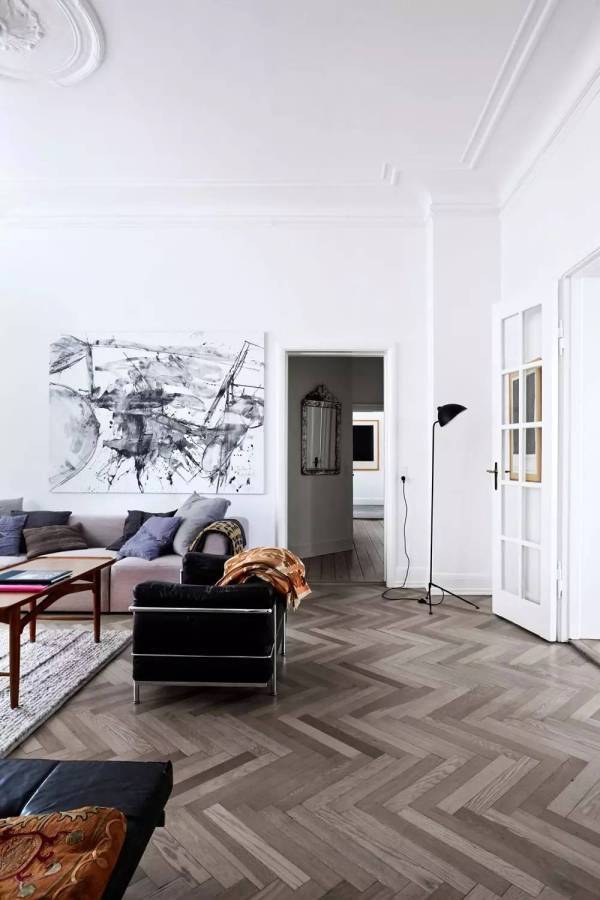 适合区域:鱼骨拼是现代大小户型的宠儿,创意表达,文艺范十足。